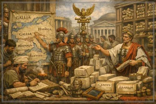 27 av. J.-C. : Octave reçoit le titre d'Auguste du Sénat, marquant le début officiel de l'Empire
