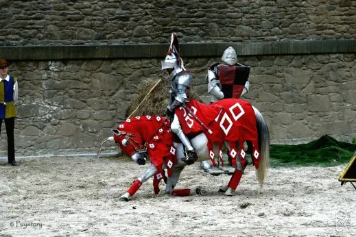 Les seigneurs du Puy du Fou avaient une devise.Devise laconique et demeurant assez énigmatique : "C'EST A JAMAIS."Devisequipeutvouloirdirequ'unefoisqu'ilsontadoptéunelignedeconduite,lesPuyduFounes'en séparent pas et qu'il n'y a plus à y revenir, que c'est à jamais, enfin !Interprétéeainsi,cettedeviseconviendraitassezbienauxPuyduFou,dontletraitdistinctifparaîtbien d'avoir toujours tenu, au cours des siècles, une ligne de conduite uniforme et inconditionnelle.FidélitéàDieu(aveclesymboledel'eaudubaptême)etauRoi(engagementaucombatpourla liberté).Une fidélité dont ils ne se sont jamais séparés,"C'est à jamais" !