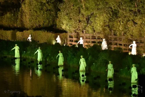 Ô vous, le préposé à ces vannes célestes.Qui déversèrent sur nous ces cascades glacées.Vousquinousavezvugrelotterdansnosvestesenattendantsousl'eaudefairenotre entrée.Ayez pitié de nous !Vousquiavezpuvoirnostuniqueslégèrescolléessurnotrepeaudedanseuses trempées.Noschignons,nosbouclettes,dontnousétionssifièrestransforméesentignasseseten mèches mêléesAyez pitié de nous !Vousquin'ignorezpaslesortdenoschaussonsdeblancstissuscouverts,auxrubans de satin enfouis dans la gadoue de la pointe au talon.Et qui n'étaient pas secs le lendemain matin.Ayez pitié de nous !Et tous les spectateurs et les acteurs de l'ombre.Et ceux de la lumière et les chevaux aussi.Vous font cette prière avec nous en grand nombre.Fermez pour cette année les portes de la pluie.Ayez pitié du Puy du Fou !