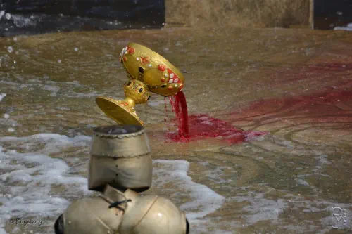 Troyes, associé à une lance au bout de laquelle perlent des gouttes de sang.