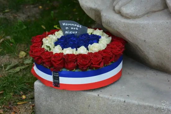 cocarde (rouge et bleu), représentative de la prise de la Bastille.