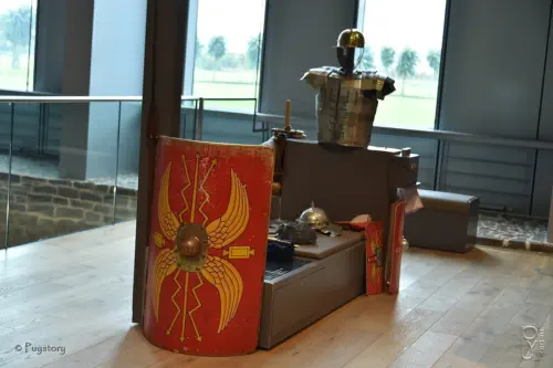 L'équipementdulégionnaireétaitcomposéd'unegourdeetd'unsacencuir,d'unepioche et d'une hache, de ses armes, de son armure ou de sa cote de maille, d'un bouclier, etc. Son habillement consistait en une jupe (tunique de laine) et de sandales (caligae).Le bouclier (scutum) est de forme semi-cylindrique.Sa hauteur est de 1 m 20.Lapoignéeétaithorizontaleetunepiècemétalliquerondeétaitfixéedevantlebouclier (Umbo)pourprotégerlamainquitenaitlebouclieretpouvaitserviràrepousserl'ennemi brutalement.Lecasque(galeum)pourlecasquedecuiretcassispourlecasquedemétalétaienttrès équipés.Ils disposaient d'oreillettes de chaque côté de la mâchoire.Une palette disposée à l'arrière du casque servait à protéger la nuque.Le pilum était une lance utilisée pour le combat à distance. Il servait à transpercer les boucliers ennemis.Pournepasquel'armesoitretournée,lesforgeronsrefroidissaitbrusquementlapointede la lance dans l'eau et laissait refroidir le reste à l'air libre. De ce fait il y avait un point faible.Etlorsquelalanceavaitétéutilisée,lapointesepliaitlarendantinutilisablepourun second jet.La tunique grossière du légionnaire était faite de laine. Elle s'arrêtait à mi-cuisse à la manière d'une jupe. Elletenaitlelégionnaireauchaudetleprotégeaitdesonarmurequiavaitdesbandesde métal qui pouvaient être coupantes. Les sandales romaines (caligae) étaient cloutées.Elles étaient résistantes pour les longues marches.