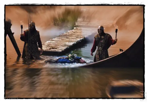 avec leurs drakkars pour piller le village.