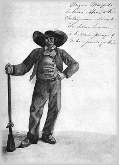 Louise de la Rochejaquelein l'a dessiné les armes à la main, parce qu'il ne les a jamais quittées.