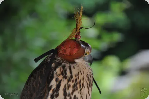 Ce chaperon évite les distractions à l’oiseau et lui permet d’arriver détendu sur le lieu de la chasse.
