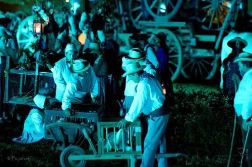 Les carrioles du château arrivent pour la fête.