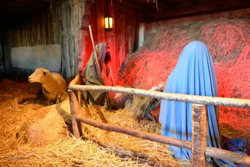 même place, la crèche peuplée de personnages sculptés par les gens des hameaux.