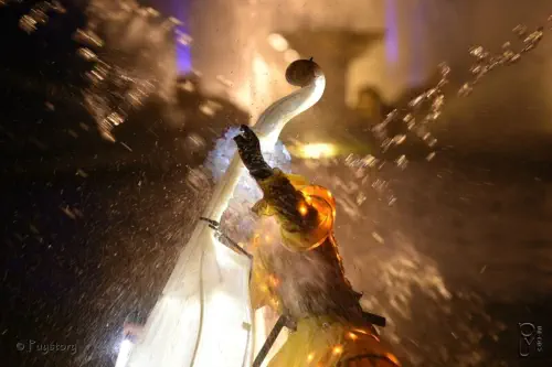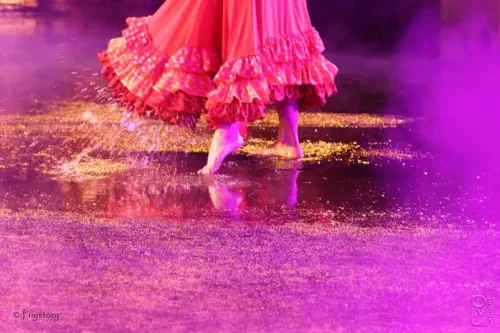 Ô vous, le préposé à ces vannes célestes.Qui déversèrent sur nous ces cascades glacées.Vousquinousavezvugrelotterdansnosvestesenattendantsousl'eaudefairenotre entrée.Ayez pitié de nous !Vousquiavezpuvoirnostuniqueslégèrescolléessurnotrepeaudedanseuses trempées.Noschignons,nosbouclettes,dontnousétionssifièrestransforméesentignasseseten mèches mêléesAyez pitié de nous !Vousquin'ignorezpaslesortdenoschaussonsdeblancstissuscouverts,auxrubans de satin enfouis dans la gadoue de la pointe au talon.Et qui n'étaient pas secs le lendemain matin.Ayez pitié de nous !Et tous les spectateurs et les acteurs de l'ombre.Et ceux de la lumière et les chevaux aussi.Vous font cette prière avec nous en grand nombre.Fermez pour cette année les portes de la pluie.Ayez pitié du Puy du Fou !