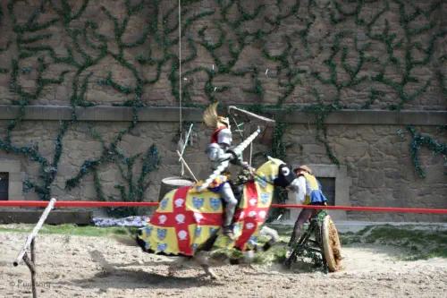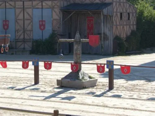 Le chevalier, sur son destrier, doit toucher l'écu au galop.