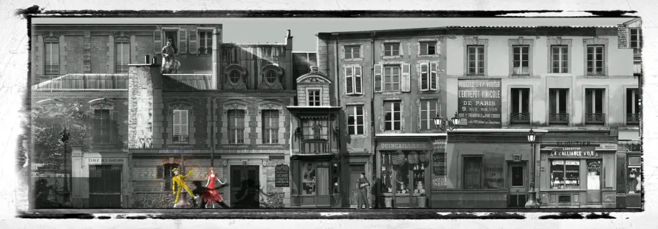 Le Mime et l’Étoile est un spectacle grandiose du Puy du Fou, élu deux fois “Meilleur Spectacle du Monde” dès sa première saison Laissez-moi vous plonger dans cette histoire captivante. Dans le spectacle, Garance est mise en scène aux côtés de Mimoza, un jeune mime rêveur d’origine tzigane. Nous sommes en 1914, et les visiteurs sont invités dans un studio pour assister, en silence, au tournage d’un tout nouveau film mettant en scène deux personnages : Garance décrite comme une étoile montante du 7ème art au début du XXe siècle, et Mimoza, le jeune mime rêveur. Sur le plateau, le réalisateur Gérard Bideau espère réaliser son rêve. Il est convaincu que seul un amour sincère pourra offrir au cinéma muet et noir et blanc une couleur et un son. Devant la caméra du metteur en scène, Mimoza, malgré son statut de mime, puise dans ses rêves d’enfance mille tours et illusions pour impressionner Garance qui a déjà gagné son cœur. Mais le tournage prend une tournure dramatique et est soudainement interrompu par un événement dramatique qui bouleverse la vie du jeune Tzigane, mais bouscule aussi les sentiments naissants de Garance et anéantit tous les espoirs du réalisateur. C’est une histoire d’amour poignante et émouvante qui se déroule dans le contexte fascinant de la naissance du cinéma. Le spectacle est un hommage aux pionniers du cinéma, comme les frères Lumière, Méliès, Keaton, Chaplin, et une plongée au cœur de la Belle Époque Il célèbre l’insouciance de cette époque et rend hommage aux premiers réalisateurs, véritables explorateurs de l’âge d’or du cirque tzigane et des illusionnistes. Une parenthèse enchantée de notre Histoire suspendue dans l’éternité, comme un souvenir d’enfance. Le Mime et l’Étoile est une révolution scénographique. Il restitue en direct l’esthétique exacte d’un film d’époque en noir et blanc, sans filtres ni artifices entre l’œil du spectateur et la scène. Les décors, les accessoires mobiles, les centaines de costumes et les effets de scène créent une illusion saisissante. Pour embarquer le spectateur dans un travelling géant, comme celui d’une caméra de cinéma, le Puy du Fou réalise une nouvelle prouesse technique et artistique. Les façades des maisons et devantures de magasins d’une rue typique de la Belle Époque défilent en décor réel devant une tribune captivée, tandis que les 120 personnages de l’histoire évoluent sur un sol mobile, renforçant l’illusion d’un travelling de près de 2 kilomètres.