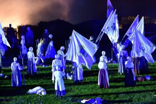 prussienne, précédés d'une simple bannière chargée d'un Sacré-Cœur et de l'inscription