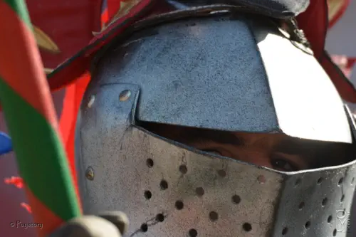 armure, casqué d'un heaume.