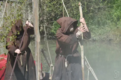 en route d'exil, toujours accompagnés des reliques de leur fondateur SAINT PHILBERT.