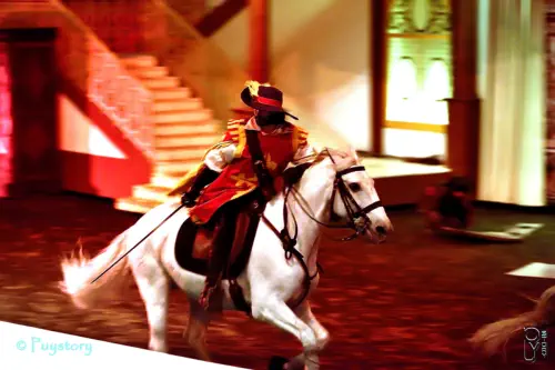 Dans le grand Carrousel, théâtre monumentale du 17ème siècle, les mousquetaires vous emportent dans une grande et belle aventure de cape et d'épée mêlant